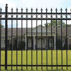 โครงเหล็กดัดประดับรั้ว8FT 6FT เคลือบด้วยผงสีดำเคลือบด้วยเหล็กชุบสังกะสี